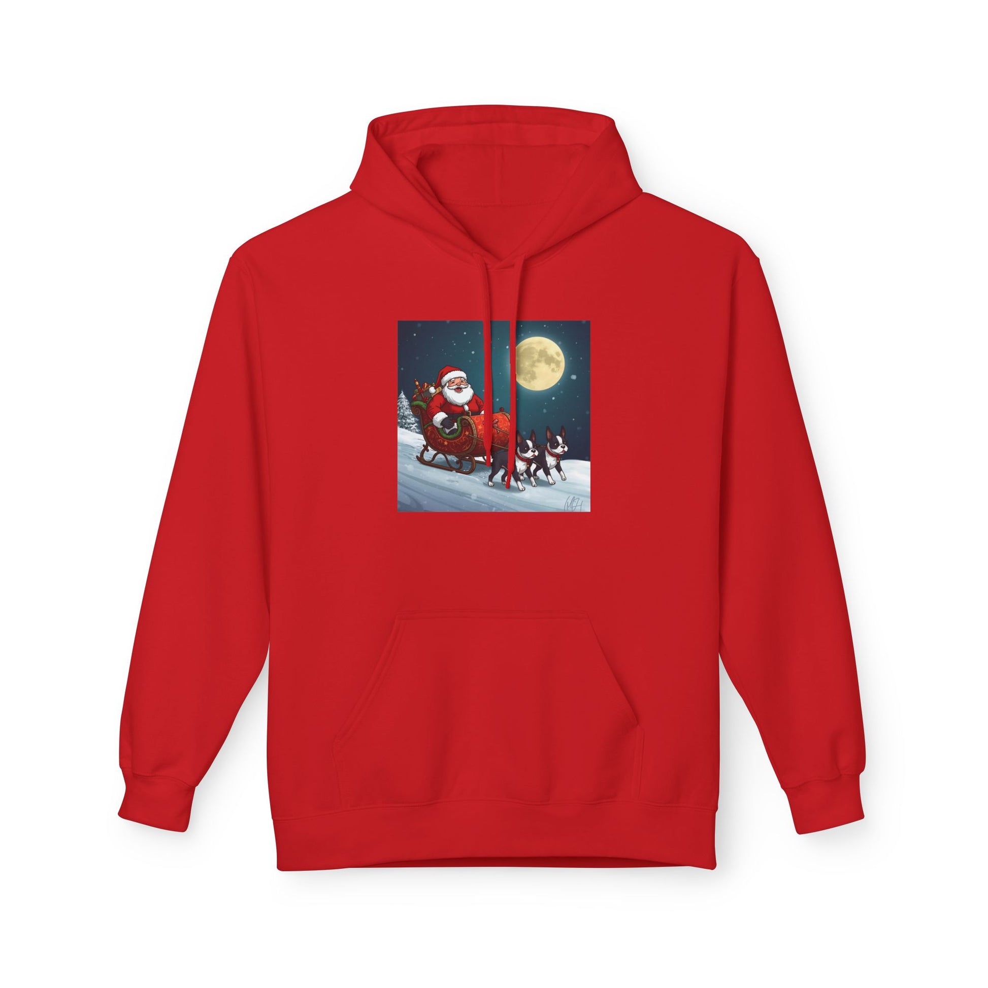Boston Terrier Hoodie: Cute and Mighty Santas Sleigh Unisex Fleece