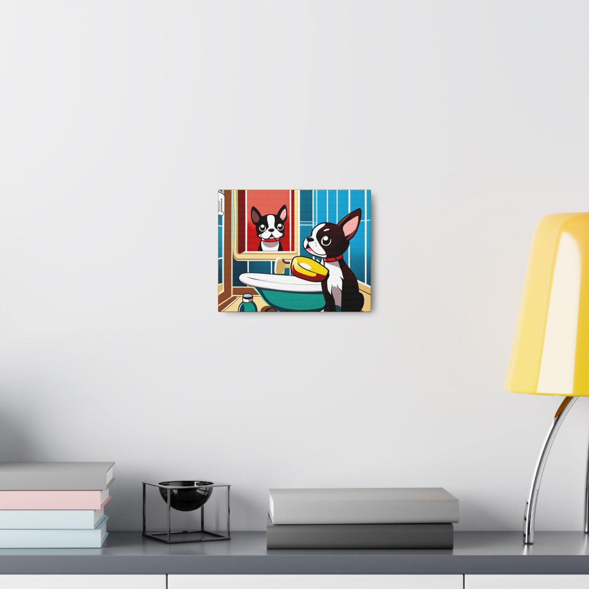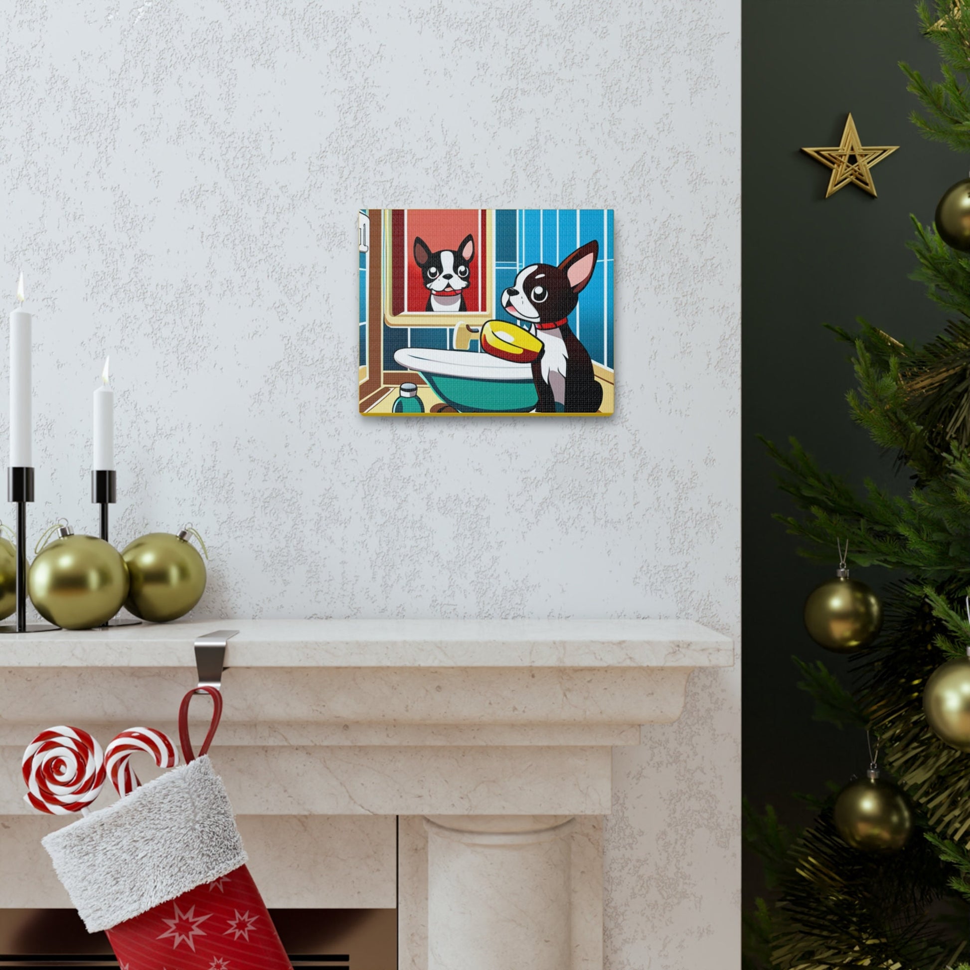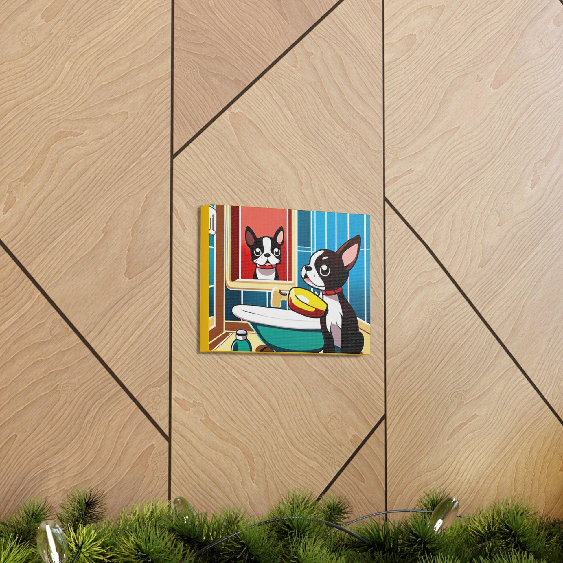 Canvas Gallery Wraps, Boston Terrier Bathroom Picture, Boston Bathroom, Boston Ready for the day