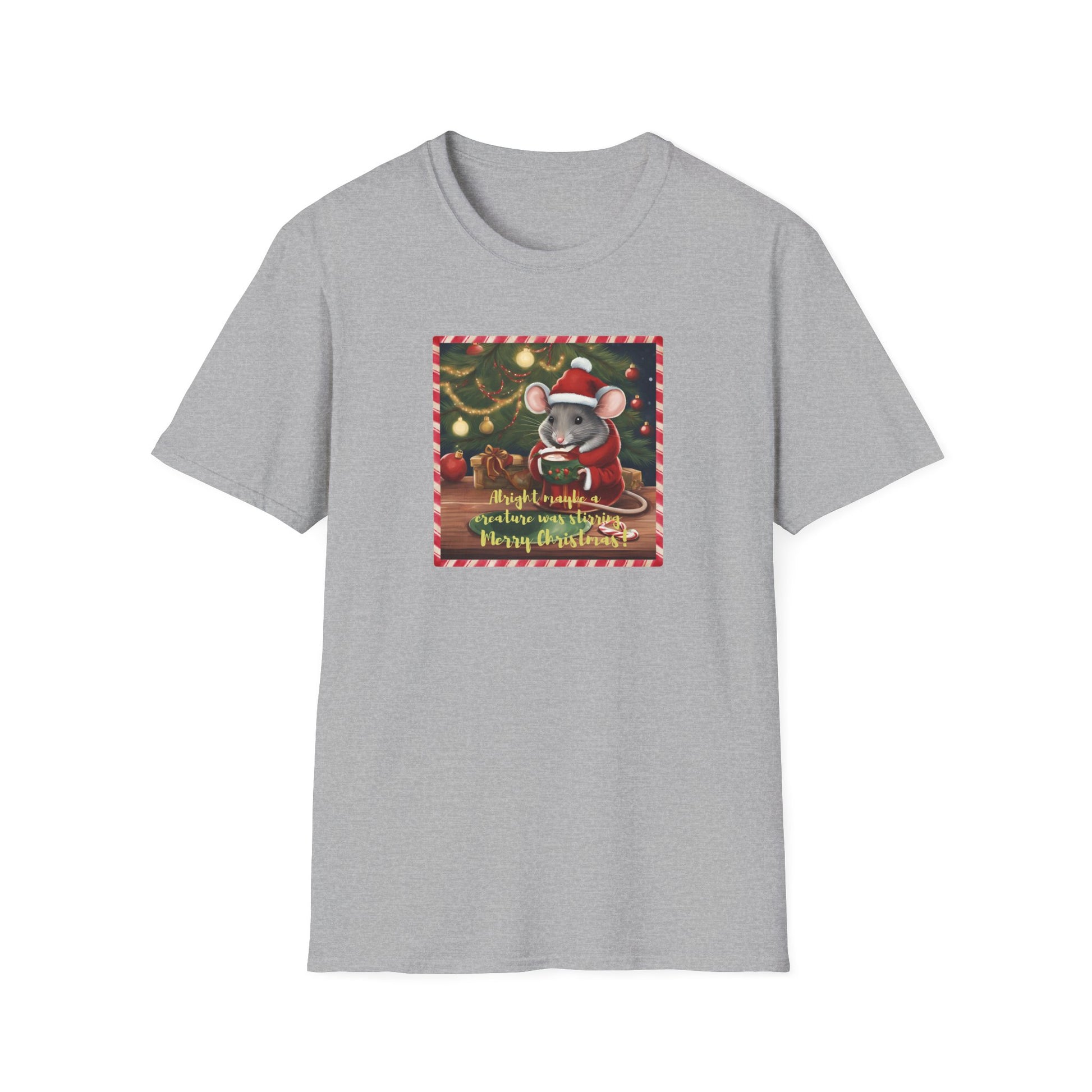 This Christmas mouse Unisex Softstyle T-Shirt is perfect for the festive season, featuring a cute design that embodies the holiday spirit. Made from durable and smooth fabric, this shirt is comfortable to wear all year round. The classic fit and versatile style make it suitable for various occasions, whether formal or casual. Ideal for adults looking to add a touch of holiday cheer to their wardrobe during Christmas celebrations.