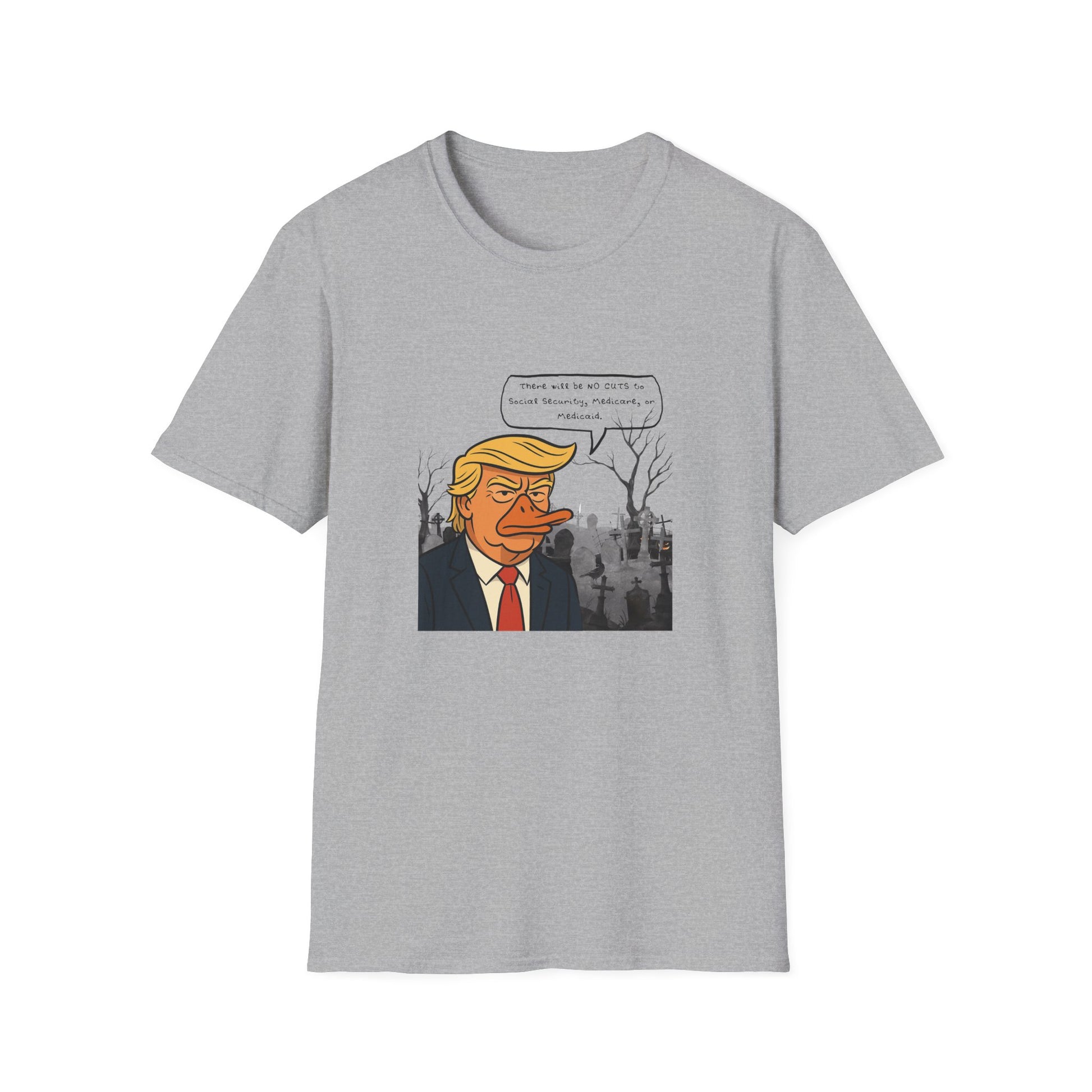 Duckbill Trump Unisex T-Shirt, Satirical Political Tee, Funny Trump Duck Shirt, Humorous Trump Parody Top, Softstyle Tee for Trump