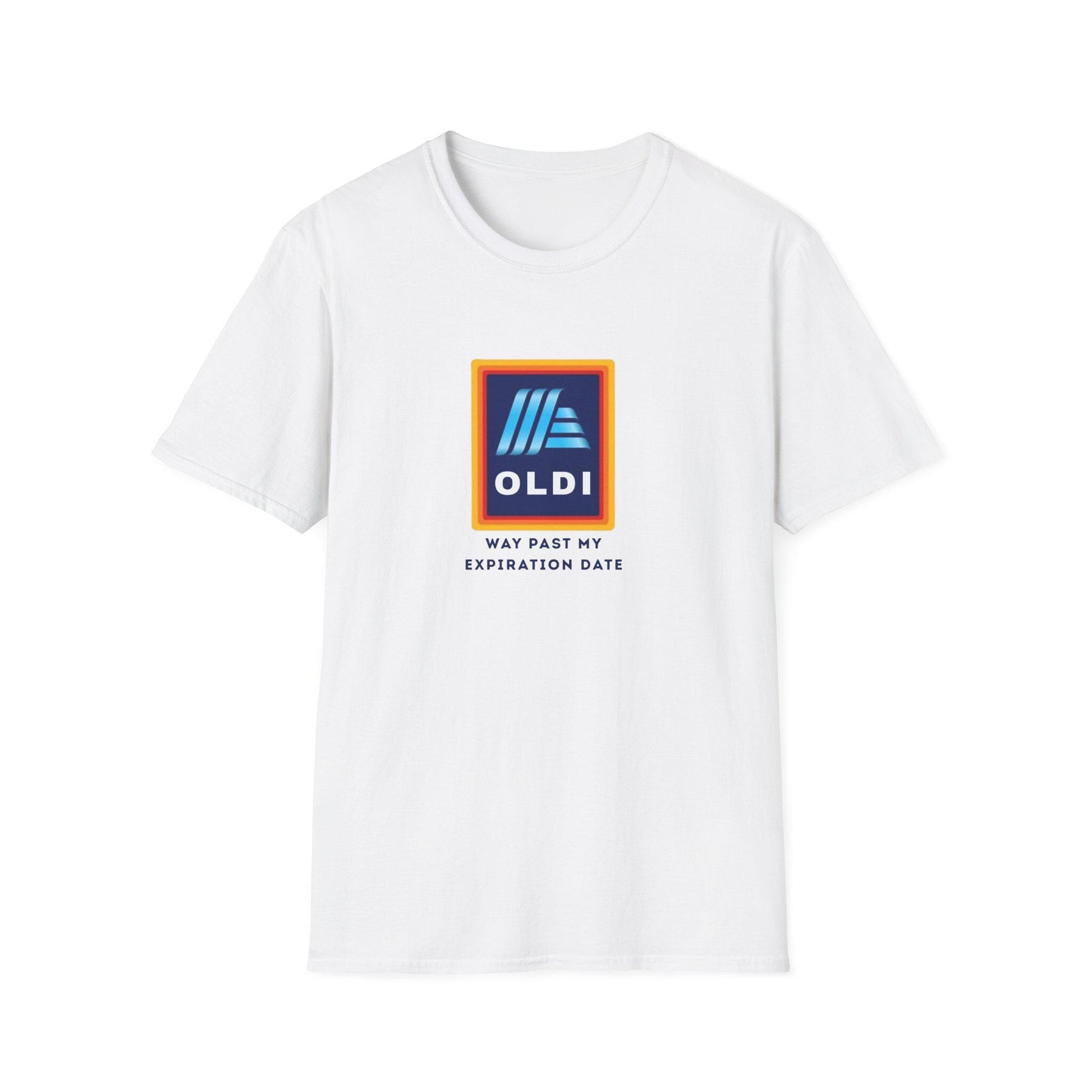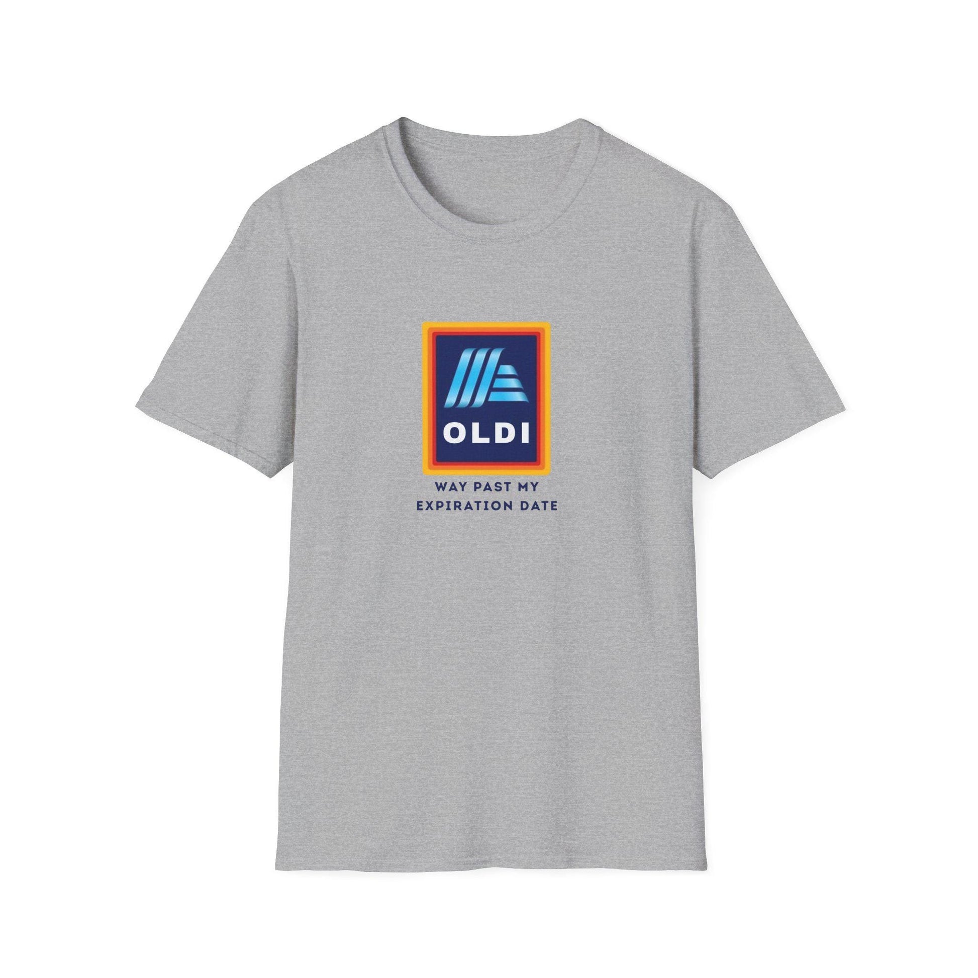 Oldi Spoof Unisex Softstyle T-Shirt, Age Humor Tee, Way Past My Expiration Date, Aldi Parody Shirt, Funny Graphic Top