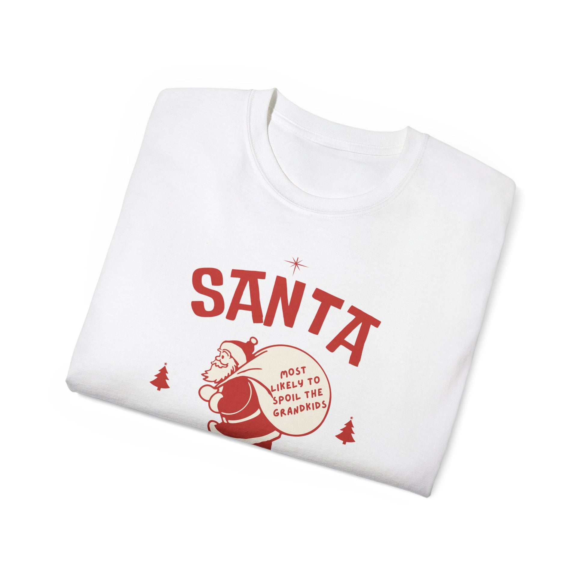 Other options are Vintage Santa Squad unisex tee, perfect for the holiday season. Features a vintage santa image with the identifier 'most likely too'. Gives a festive and cheerful vibe, ideal for Christmas celebrations and gatherings. Suitable for adults looking for a comfortable and stylish option for casual wear.