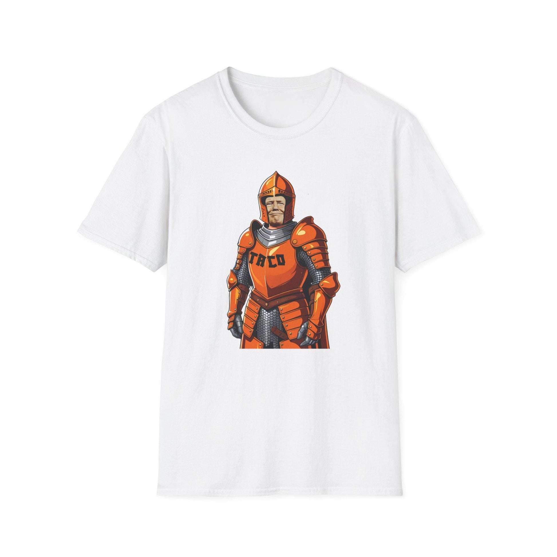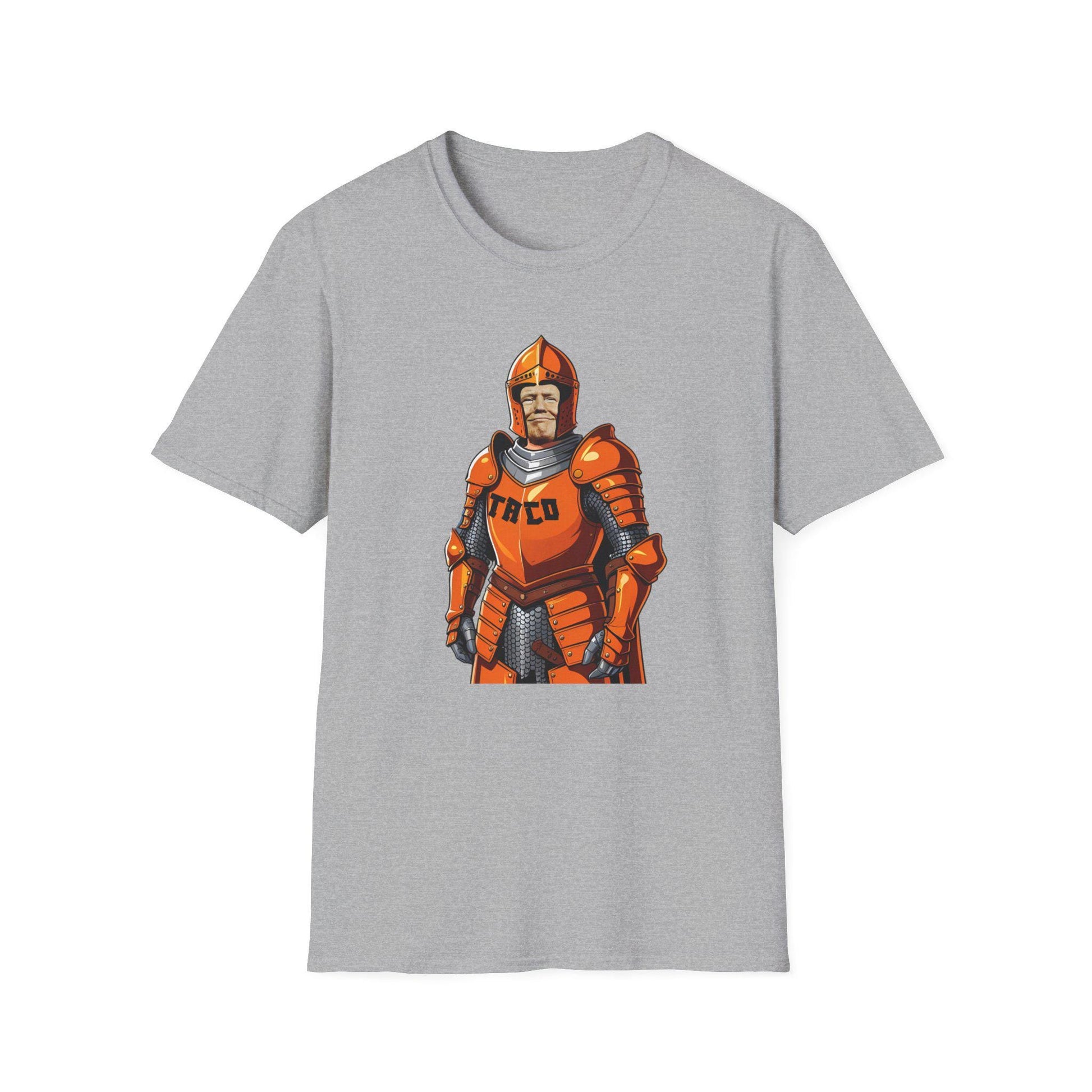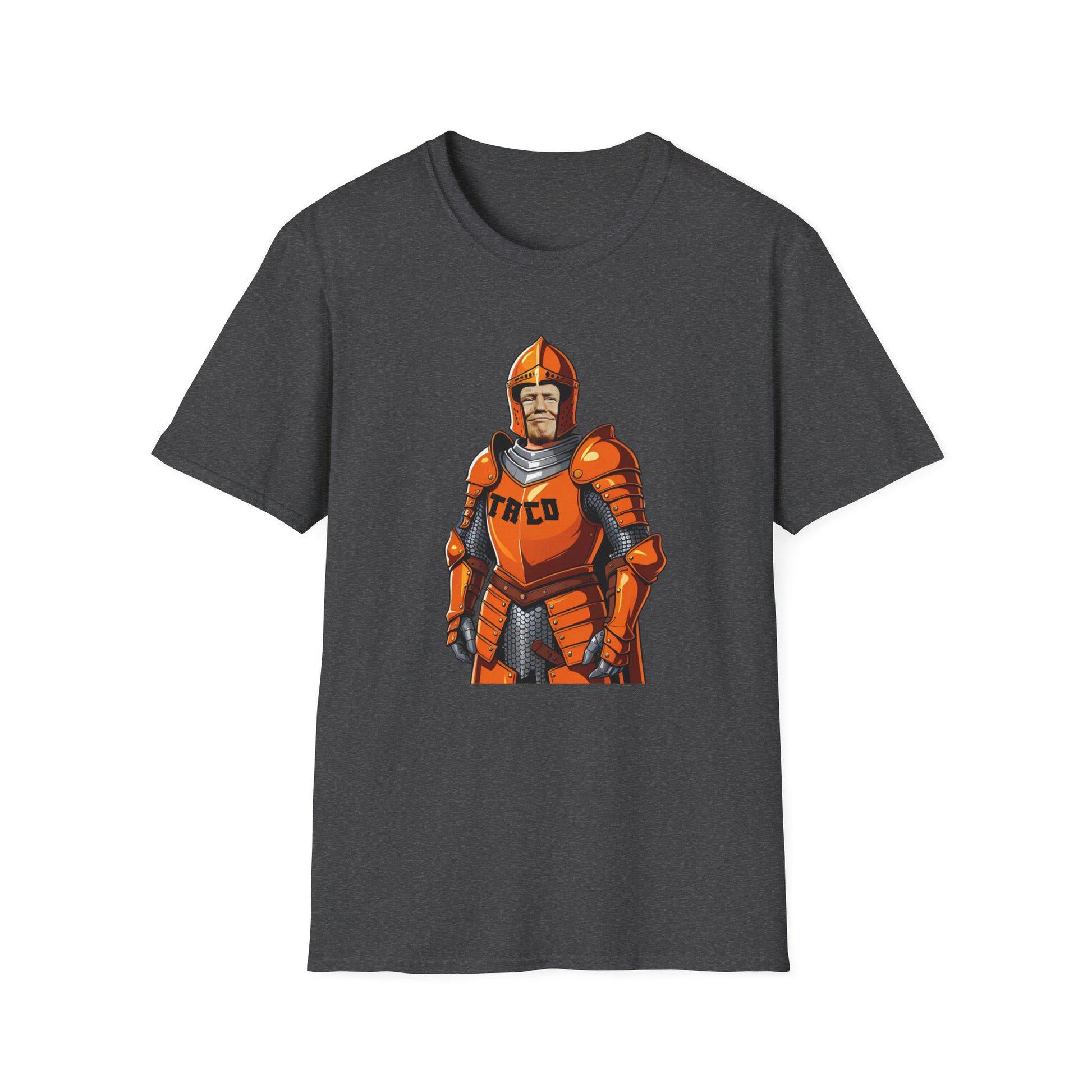 TACO Knight Unisex Softstyle T-Shirt, Funny Trump Activist Protest Tee, Orange Armor Shirt, Anti-Trump Apparel, Political Humor Top